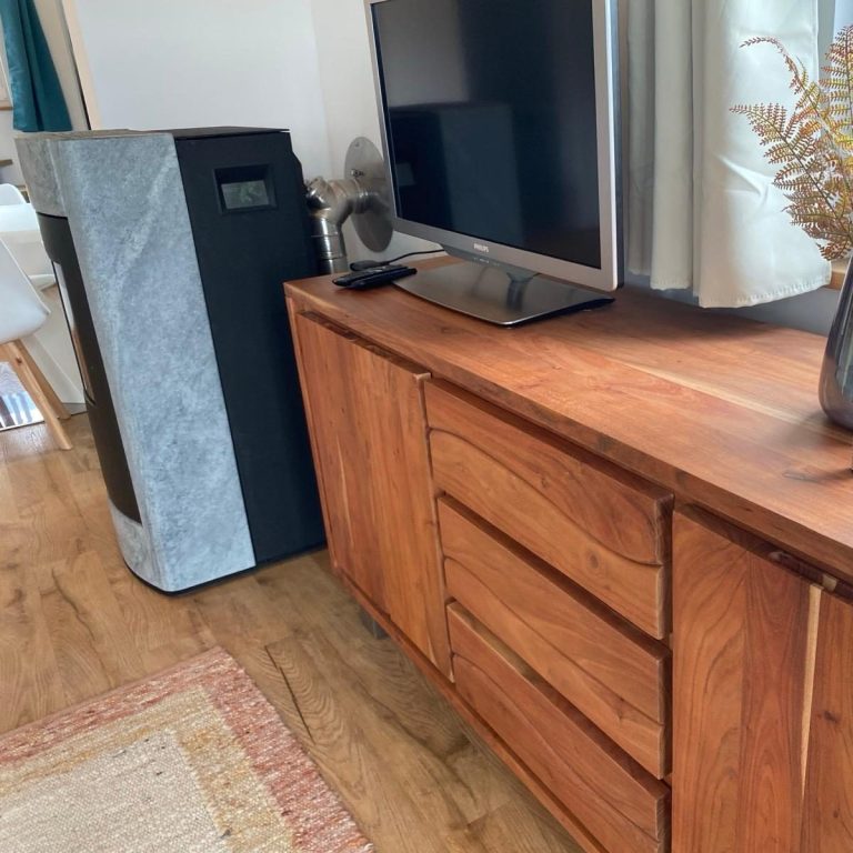 Massive Holzmöbel, ein hochwertiger Pelletofen